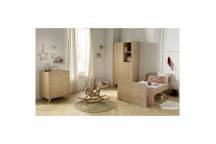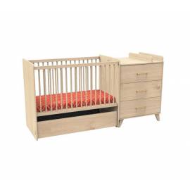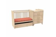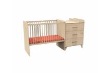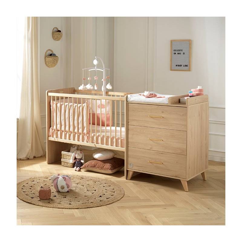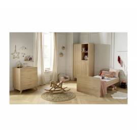 Design et évolutif ! Dès la naissance, votre bébé profitera du confort d'un lit bébé 60x120 cm et vous, vous pourrez lui faire ses soins en toute sécurité sur le meuble à langer aux nombreux rangements qui lui est accolé. Plus tard, cet ensemble se transforme en lit enfant 90x190 cm (sommier vendu séparément), accompagné d'une commode indépendante au style rétro.