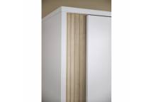 Dessus, dessous, séparation verticale, portes, tablettes mobiles et fixes, côtés en panneaux de particules mélaminés décor blanc neige, avec chants décor blanc neige, garantissant une finition impeccable.