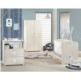 Chambre Smile Hêtre Lit évolutif + Armoire + Commode