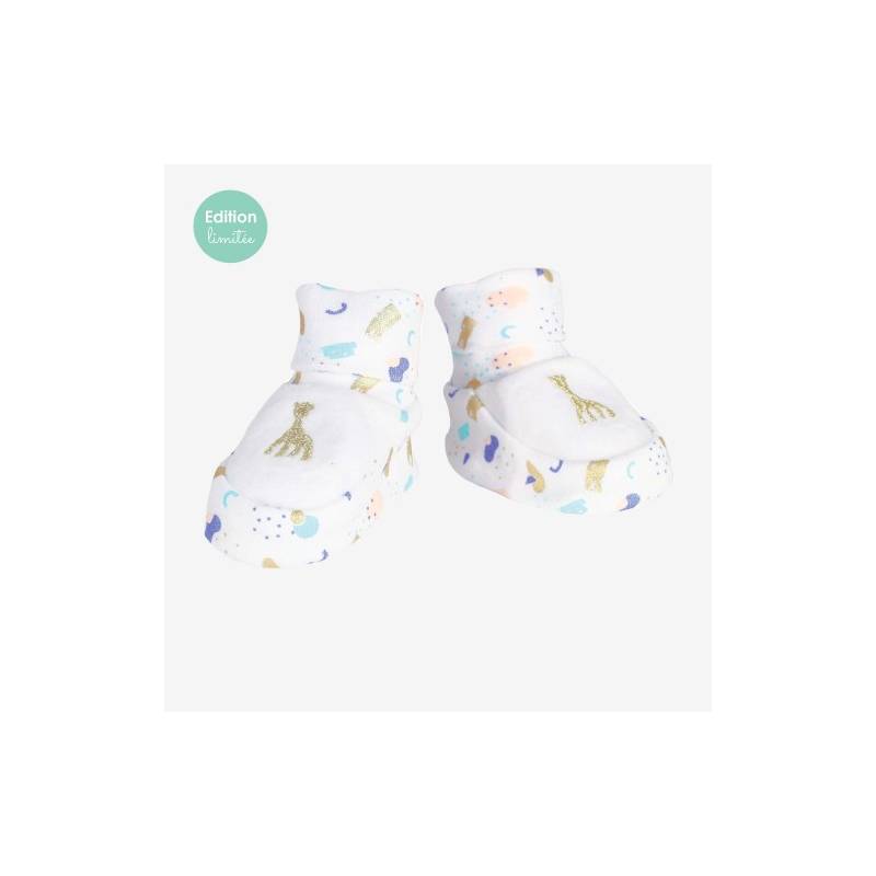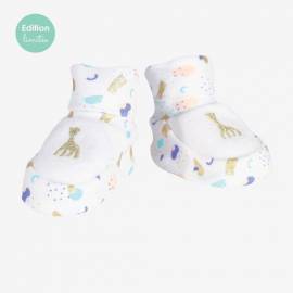Craquez pour ses magnifiques chaussons bébé 100% coton aux jolis motifs girafes et petits poids qui tiendront bien au chaud les petits petons de bébé.
