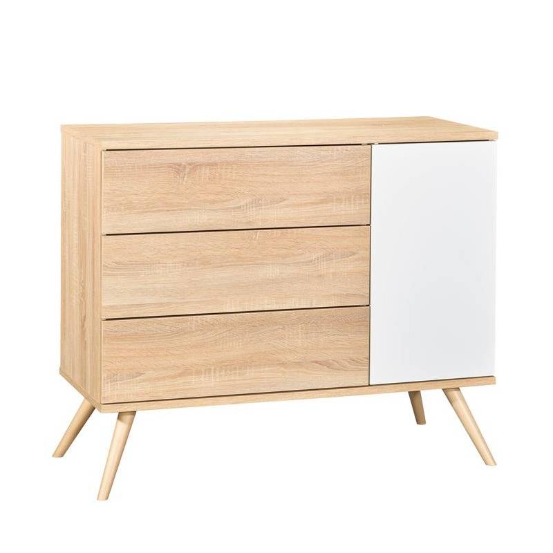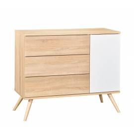 Commode Seventies 3 Tiroirs 1Porte Blanc/Bois