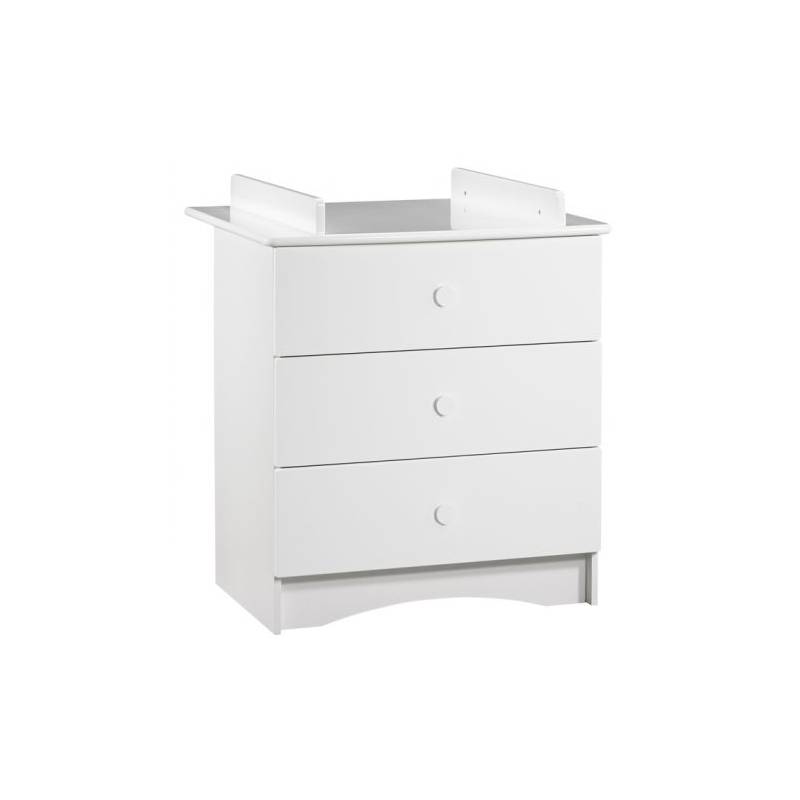 Commode 3 tiroirs avec dispositif à langer amovible. En panneaux de fibres moyenne densité (MDF) laqué blanc et en panneaux de particules mélaminés blanc, 3 boutons laqués.