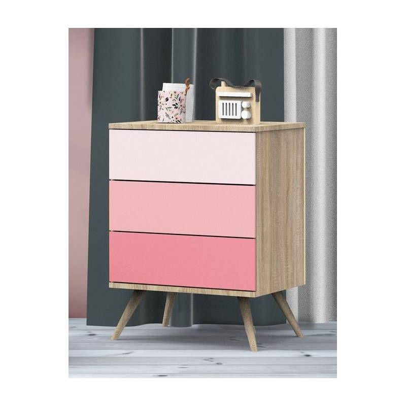 Petite commode 3 tiroirs version rose Seventies