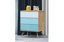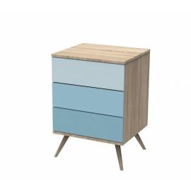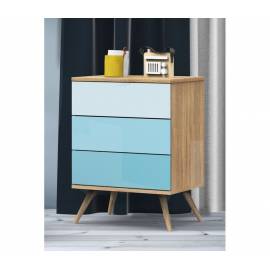 Faces des tiroirs en panneaux de fibres de moyenne densité(MDF) laquées 3 couleurs : Bleu nuage, Bleu opale , Bleu oxygène.