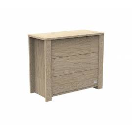 Dessus, traverse basse avant, montants avants et arrières, côtés et faces de tiroirs en panneaux de particules revêtus papier décor Chêne noisette, chants décor bois.