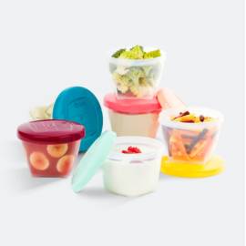 Les Babybols se révèlent très pratiques lors de la diversification alimentaire. Vendus par lot de 6, ils permettent de prévoir tous les repas de la semaine avec un dosage précis grâce aux graduations. Pratique, leur couvercle inscriptible permet de noter le plat conservé !