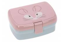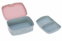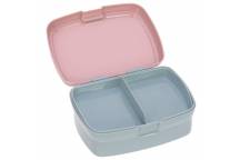La boîte à goûter bicolore est équipée d'un compartiment amovible permettant de séparer les différentes collations.