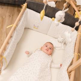 Une couverture au toucher tout doux, chaude et rembourrée de ouate de polyester 100% recyclé pour offrir un confort optimal à votre bébé.
