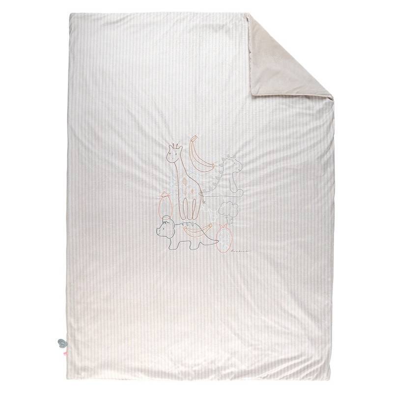 La couverture 100 x 140 cm en Veloudoux beige et de la collection Tiga, Stegi & Ops avec ses personnages tendres rebrodés garantit une grande douceur et infinie tendresse.