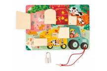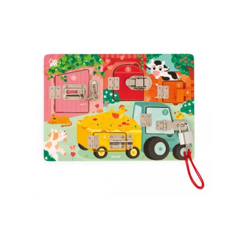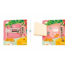 Dès 3 ans, les enfants développent leur vocabulaire et leur logique en s'amusant ! Serrures, verrous, clés... il y a de quoi s'amuser grâce à cette planche en bois ! Il sauront pleins de choses à expérimenter, découvrir et auxquelles réfléchir !