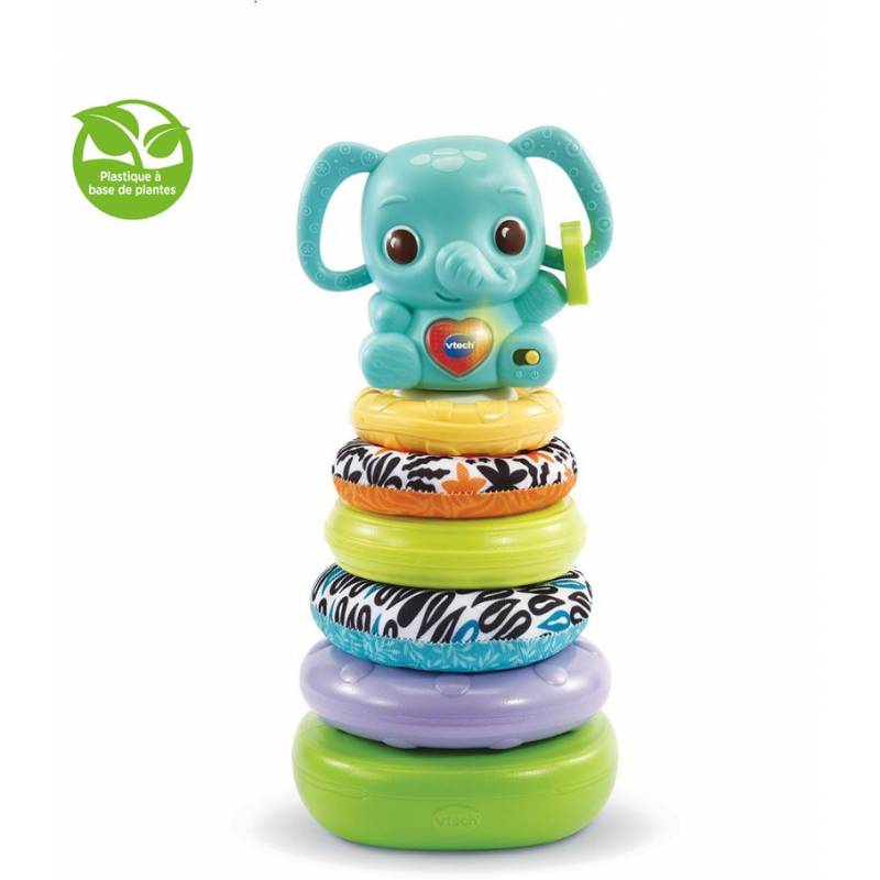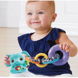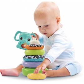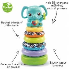 Avec Nino, éléphanteau empilo 3 en 1, votre tout-petit secoue le hochet pour déclencher des chansons, des sons et des phrases amusantes. Bébé peut aussi accrocher les anneaux entre eux ainsi que jouer avec la tour à empiler.