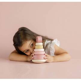 Cette tour ludique en bois pour enfants est conçue pour développer la coordination œil-main grâce à un jeu amusant et pratique. Les enfants sont encouragés à placer les anneaux en bois dans le bon ordre et à les empiler sur la pyramide.