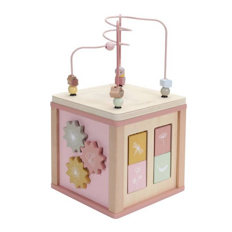 Ce cube d’activités crée de nombreux défis pour votre enfant. Chaque côté est décoré de belles illustrations Wild Flowers et offre des activités éducatives comme le tri de formes, des engrenages qui tournent et, sur le dessus, une belle spirale de perles.