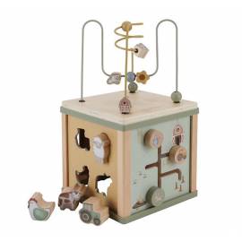 Ce cube d'activités offre de nombreux défis pour votre enfant. Chaque côté est illustré avec les amis de la ferme et offre une activité ludique d'apprentissage comme un trieur de formes, des engrenages tournants, des puzzles et une spirale de perles amusante sur le dessus.
