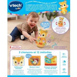 Avec son design coloré et interactif, cet ourson stimule la curiosité de Bébé qui adore le faire basculer et le regarder se dandiner au rythme des chansons et mélodies.