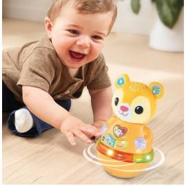 Ourson culbuto : Bébé pousse doucement son ourson pour le voir se dandiner et déclencher des sons rigolos grâce au détecteur de mouvement.