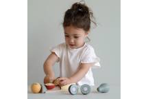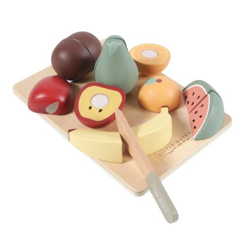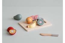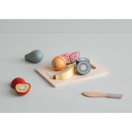 Votre enfant adorera vous imiter en préparant à manger avec ce joli set de 6 fruits différents. Une planche à découper et un couteau en bois sont fournis pour couper les fruits en deux et découvrir ce qui se cache à l’intérieur.