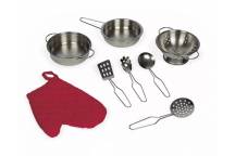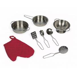 8 accessoires inclus : gant de cuisine, égouttoir, marmite, casserole et divers ustensiles accompagneront votre enfant dans ses temps de jeu !
