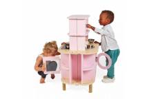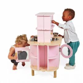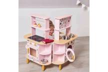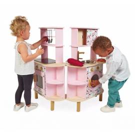 Cuisine qui s'ouvre et utilisable en recto/verso, proposant 4 espaces de jeu ! Sonore, lumineuse avec rangements.