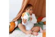 Ses coloris écru, vert et terracota en feront un jouet d'éveil mixte, idéal à offrir en cadeau de naissance.