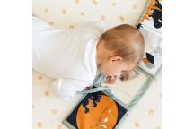 Il est équipé d'un petit miroir carré, offrant à bébé la possibilité de s'admirer et de s'émerveiller. De plus, il se plie et se déplie facilement en accordéon, permettant à votre tout-petit de contempler toutes les illustrations en une seule fois, stimulant ainsi sa curiosité. Vous pourrez facilement le fermer à l'aide de 2 petits liens.
