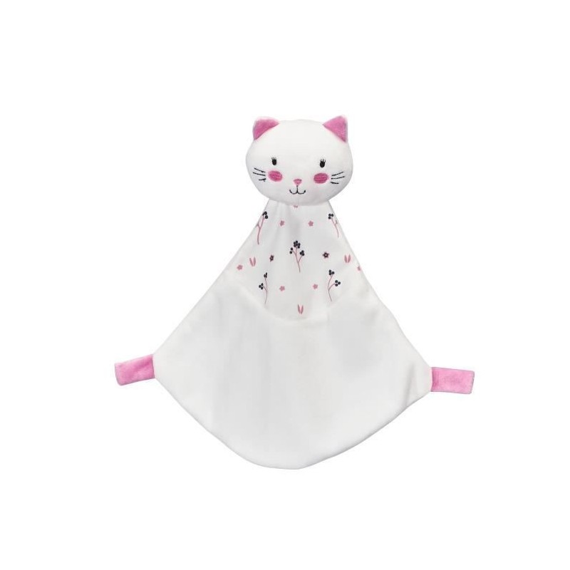 Un grand doudou blanc et rose avec une touche de noir de 28 X26 cm sera tout doux.