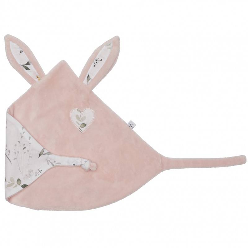 Un joli doudou plat tout doux avec des oreilles de lapin pour faciliter la prise en main par bébé.