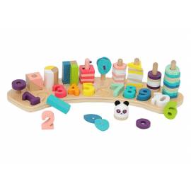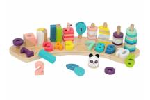 • 65 pièces en bois à encastrer, empiler, enfiler.