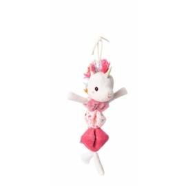 Lena la Licorne est un hochet vibrant à suspendre conçu pour les bébés dès 6 mois.