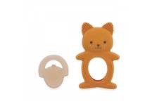 Ce duo se compose d’un anneau en silicone souple avec picots et rainures, ainsi que d’un élément réfrigérant en forme de noisette. Placé au réfrigérateur pendant 10 à 20 minutes, ce dernier procure un effet frais immédiat qui aide à calmer les douleurs liées à l’apparition des premières dents.
