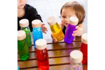 Avec ces bouteilles, inspirées de la palette de couleurs de la nature, les enfants découvrent les couleurs, s’émerveillent de la lumière et stimulent leur concentration tout en trouvant leur moment de calme.