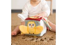 Ce cube d'activités coloré aux différentes textures et activités stimule tous les sens de bébé : le toucher, la vue et l’ouïe. Composé d'un miroir, d'un anneau de dentition en silicone sans BPA et de feuilles en papier bruissant, bébé sera occupé de longs moments !