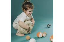 Cette sélection de cinq balles offre des expériences sensorielles uniques et variées grâce aux différentes matières naturelles qui ont été choisies pour chacune d'elles. Différents poids, dimensions, températures et textures qui donnent lieu à des possibilités infinies de jeu libre et imaginatif.