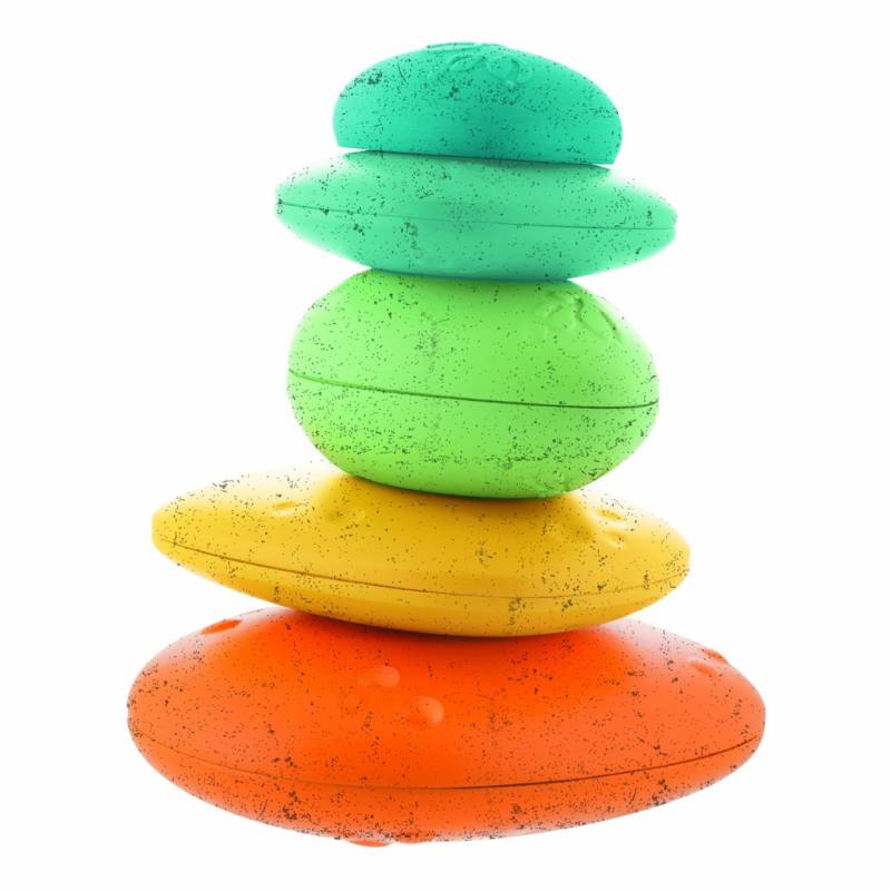Avec les Galets en Equilibre Eco+, les enfants peuvent s'amuser à empiler les 5 galets de couleur les uns sur les autres, par ordre de taille ou de façon aléatoire