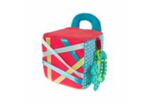 Cube d’activités en tissu doux qui développe le sens du toucher et la coordination des mouvements de bébé tout en s’amusant !