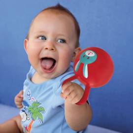 Un hochet rigolo en forme de balle ! Le petit grelot harmonieux stimule l’attention de Bébé. Sa matière en plastique souple résiste aux mâchouillements. Poignée facile à prendre en main.