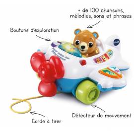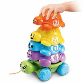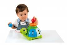 Fonctionnement interactif : Lorsque l’enfant tire la tortue, elle émet des mélodies et roule en émettant des sons.