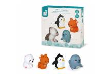 4 animaux polaires : un ours blanc, un manchot, un phoque, un renne.