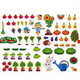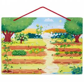 Grâce à ses 70 magnets colorés, les enfants peuvent composer et re-composer un jardin personnalisé tout en s'amusant à reconnaître et nommer les différents éléments.