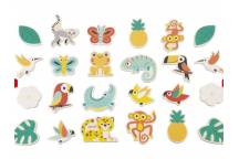 Ce set de 24 pièces colorées comprend une variété d'animaux et de plantes exotiques, parfait pour stimuler l'imagination des enfants tout en décorant leur
