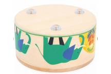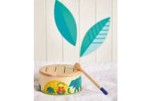 En tambourinant, les enfants découvrent la relation de cause à effet et renforcent leur coordination tout en s'éveillant aux rythmes et aux sonorités douces que ce tambour en bois produit.