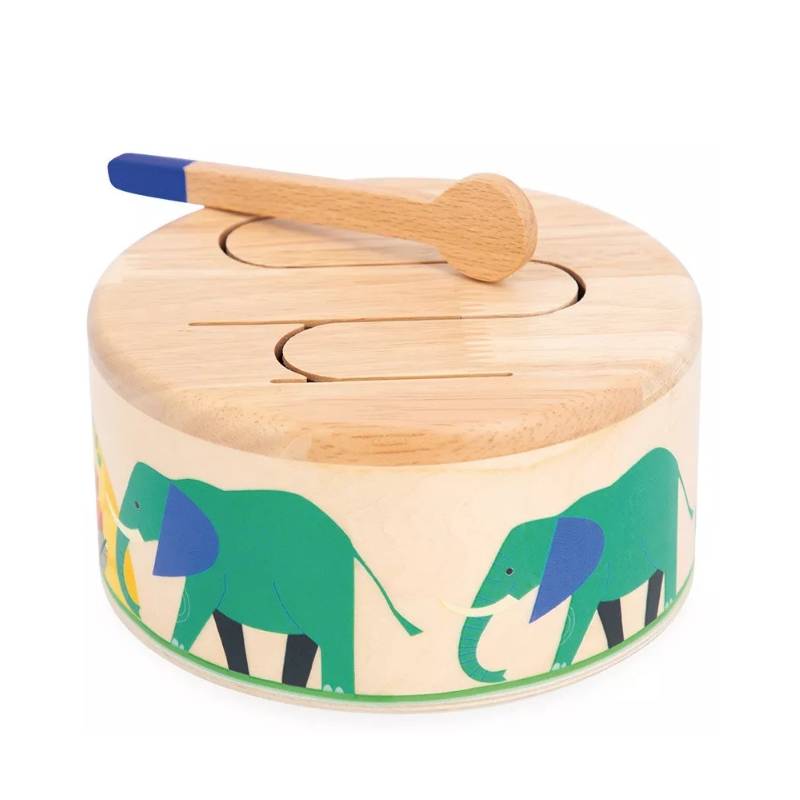 Avec ses illustrations colorées représentant un petit éléphant, ce tambour est non seulement amusant mais aussi esthétique.