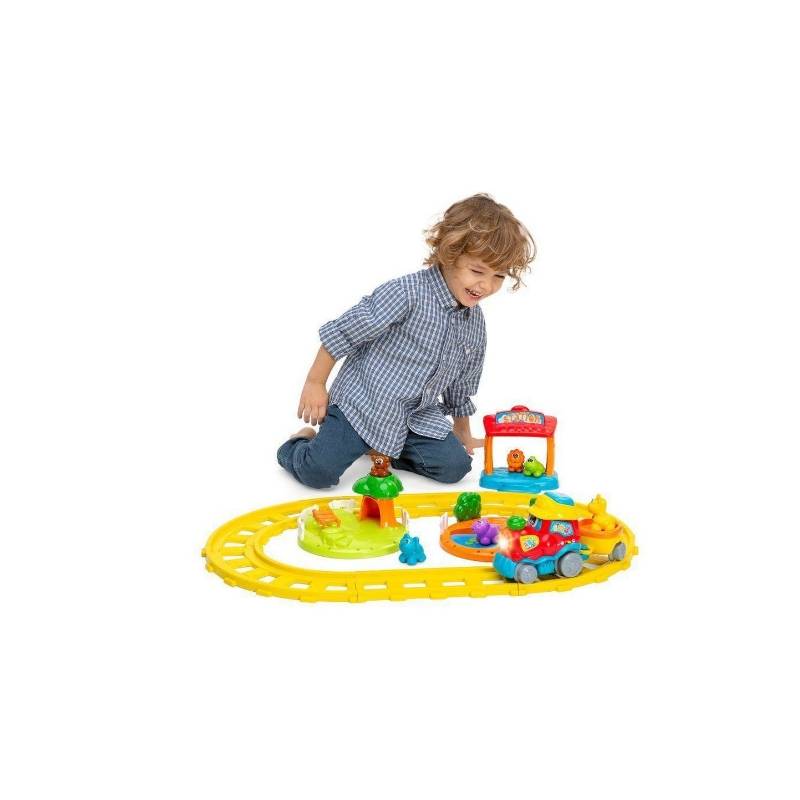 Le train motorisé parcourt le circuit en activant des sons et des chansons qui captivent l’attention de l’enfant. Il s’arrête à différents points du parcours, permettant à l’enfant de découvrir de nouvelles informations sur les animaux.