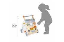 En plus de la marche, votre enfant pourra tester sa motricité fine ainsi que sa dextérité avec les 9 activités ludiques proposées : boulier, boite à formes, labyrinthe, engrenages, bouton rotatif sonore, "gratte-gratte", miroir rotatif grossissant, tambour et xylophone métal pour développer son éveil musical.