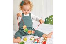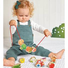 Vite, au potager ! Avec ce set de perles à enfiler en bois sur le thème de la ferme, bébé développe sa motricité fine en s’amusant, et ce dès ses 2 ans.
