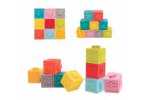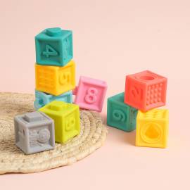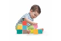 1er jeu de construction ! 9 cubes souples et colorés à empiler et à encastrer. Spécialement conçu pour les écrasements et mordillements. Sécurité et hygiène garanties.