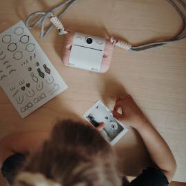 Grâce à sa technologie d’impression thermique, l’appareil garantit une impression facile et sans encre transformant chaque moment capturé en souvenir à partager. Vos enfants pourront partager leurs photos directement avec leurs copains et s’amuser ensemble. Avec les 3 aimants inclus vous pourrez encadrer leurs créations et les aimanter sur le frigo.