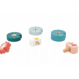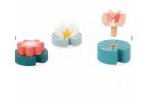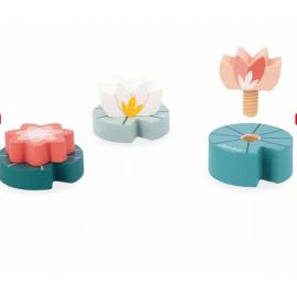 Un jeu à visser composé de 3 nénuphars, de formes et diamètres variés