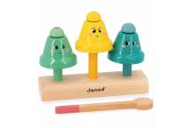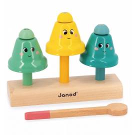 3 clochettes musicales et leur petit bâton en bois invitent à l’expérimentation