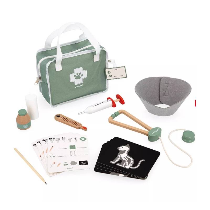 La Mallette Vétérinaire Janod est un jouet d'imitation conçu pour permettre aux enfants de s'imaginer dans la peau d'un vétérinaire en soignant leurs